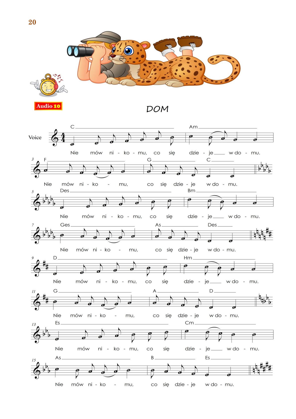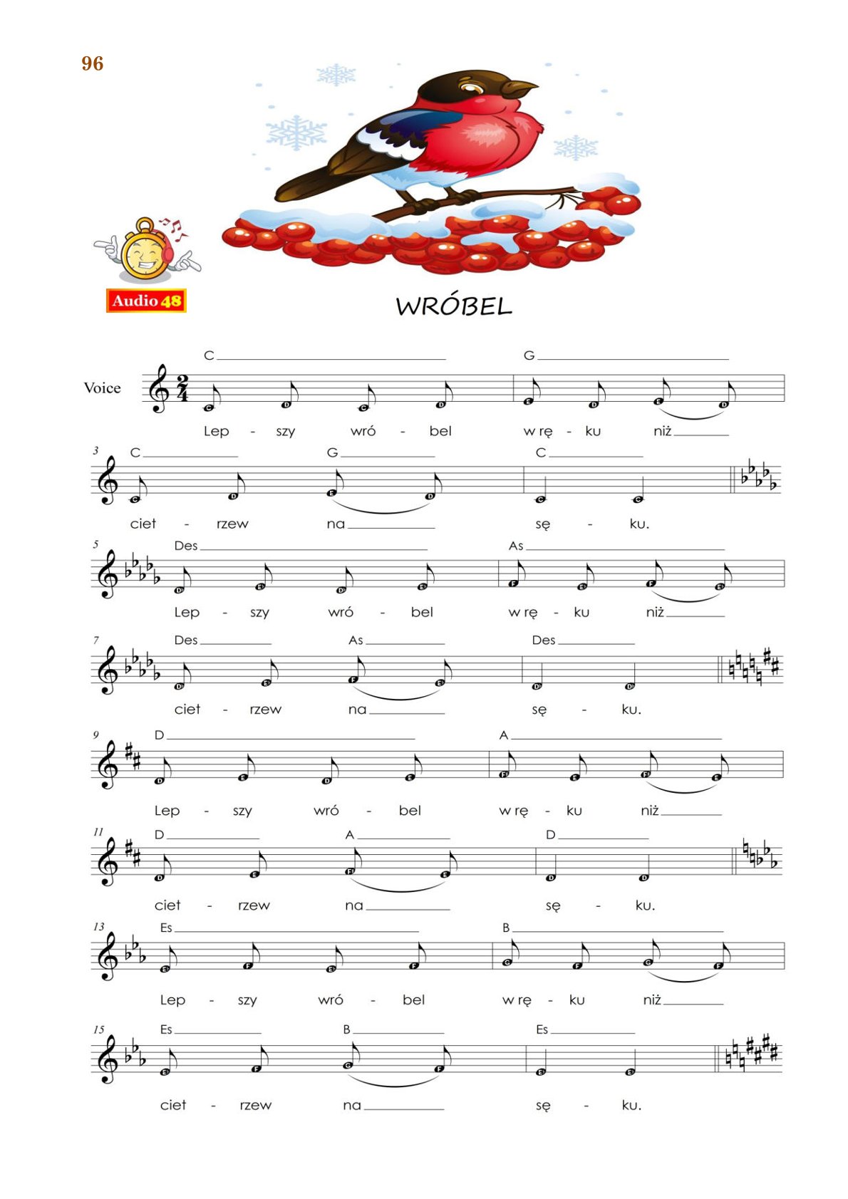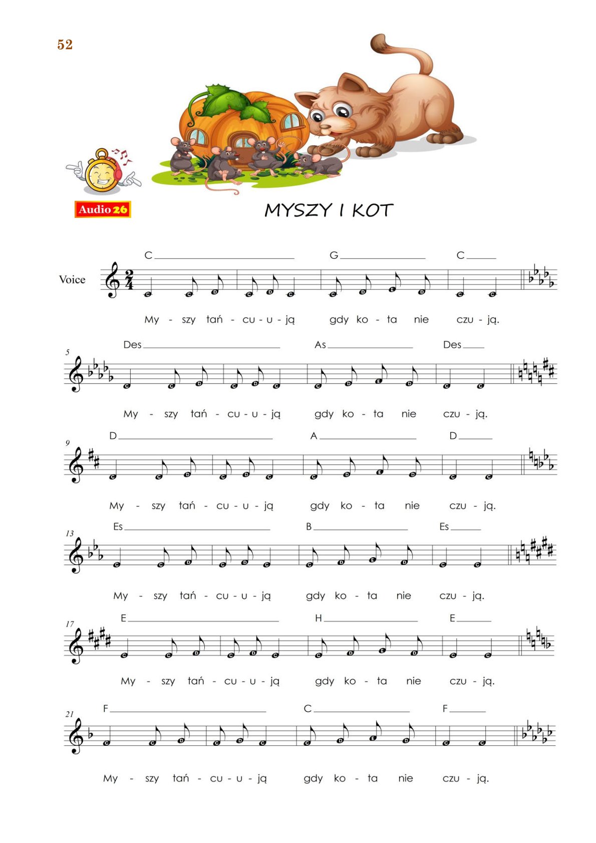 „Czysty Śpiew” to zbiór 55 nowoczesnych rozśpiewek wokalnych, stworzonych specjalnie dla przedszkolaków i młodszych uczniów szkoły podstawowej. Wesołe podkłady MP3 i barwne ilustracje zamieniają zajęcia muzyczne w prawdziwą przygodę 🎵, pomagając jednocześnie rozwijać kluczowe umiejętności wokalne.