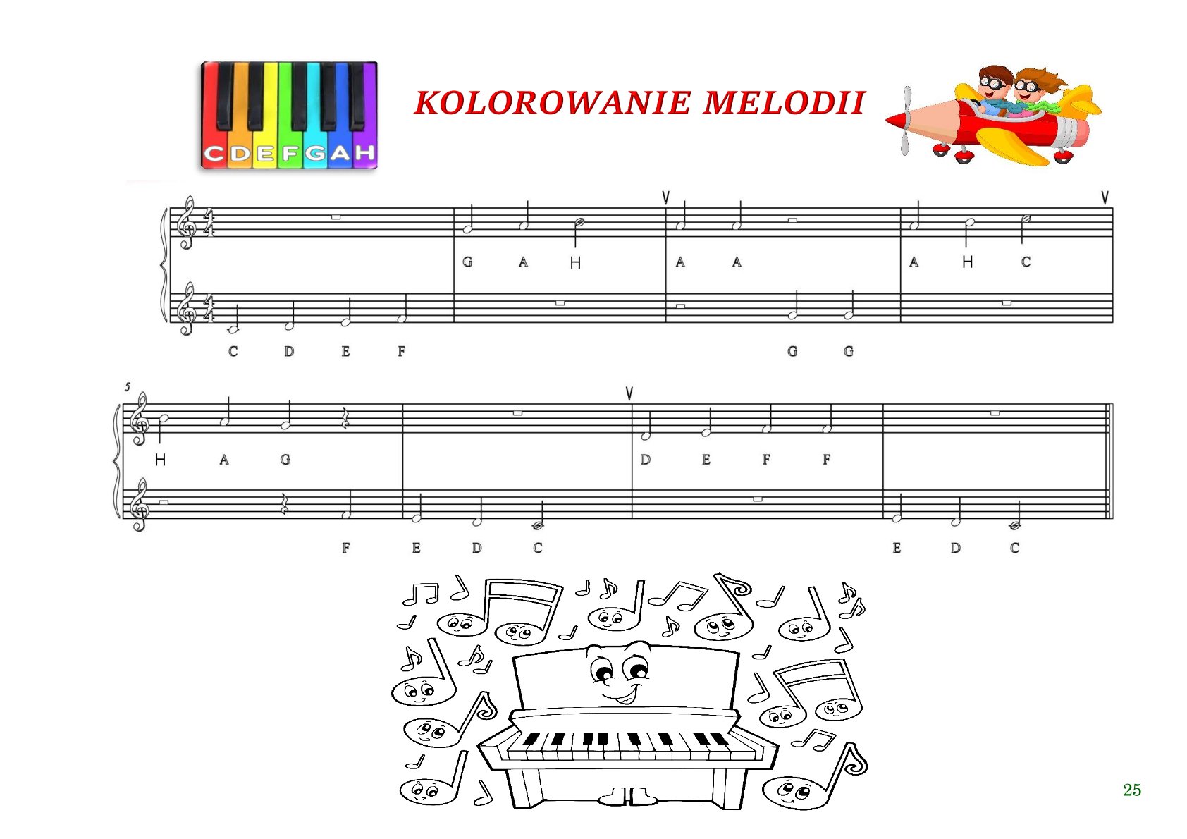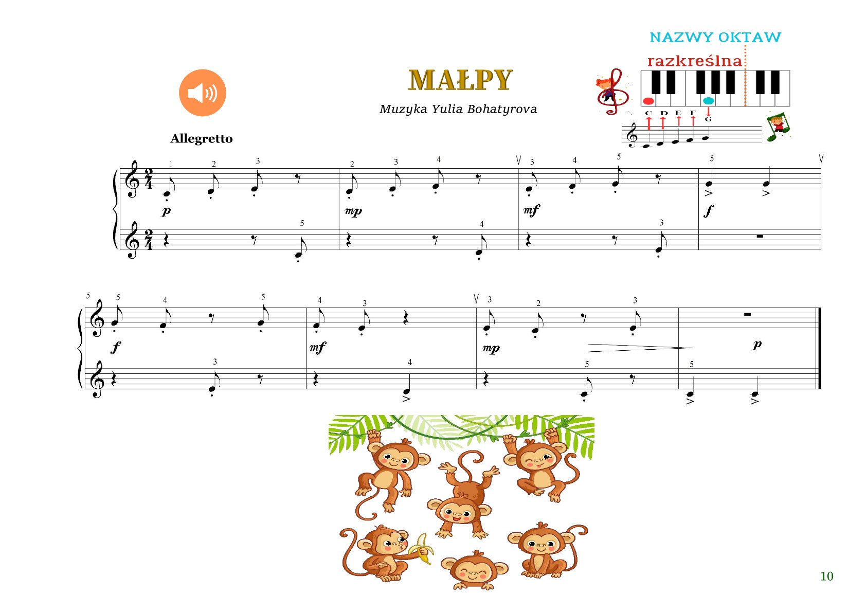🎶 Tonacje i znaki przykluczowe — utwory zawierają jedną tonację, dzięki czemu uczą słuchu i myślenia muzycznego.