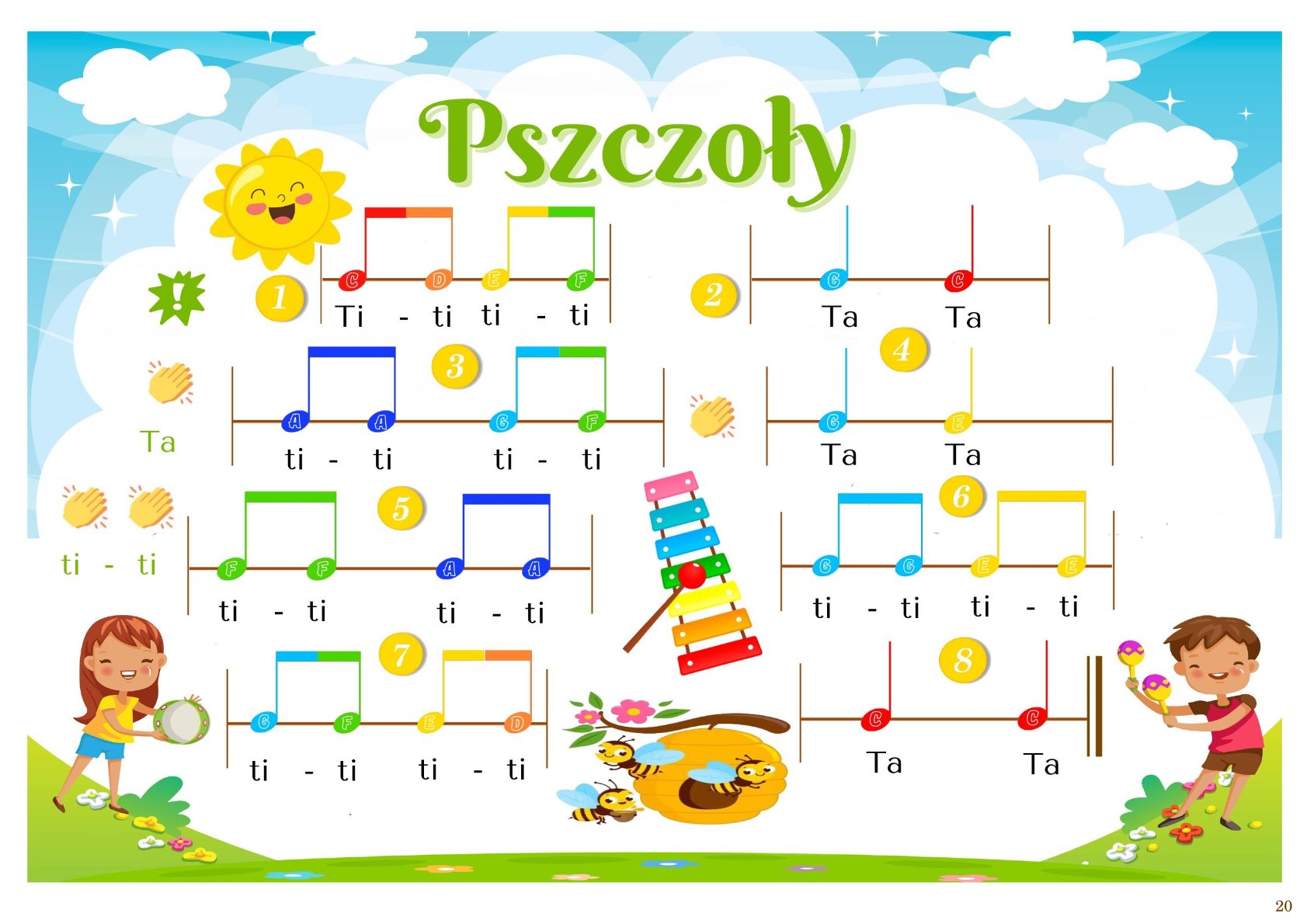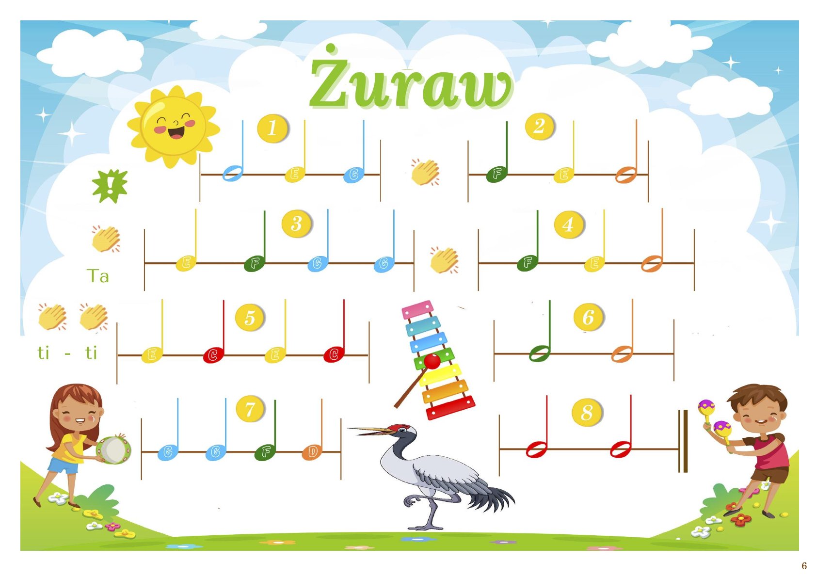 🎨 Kolorowe nuty rytmiczne — nauka wartości rytmicznych staje się jasna i atrakcyjna.