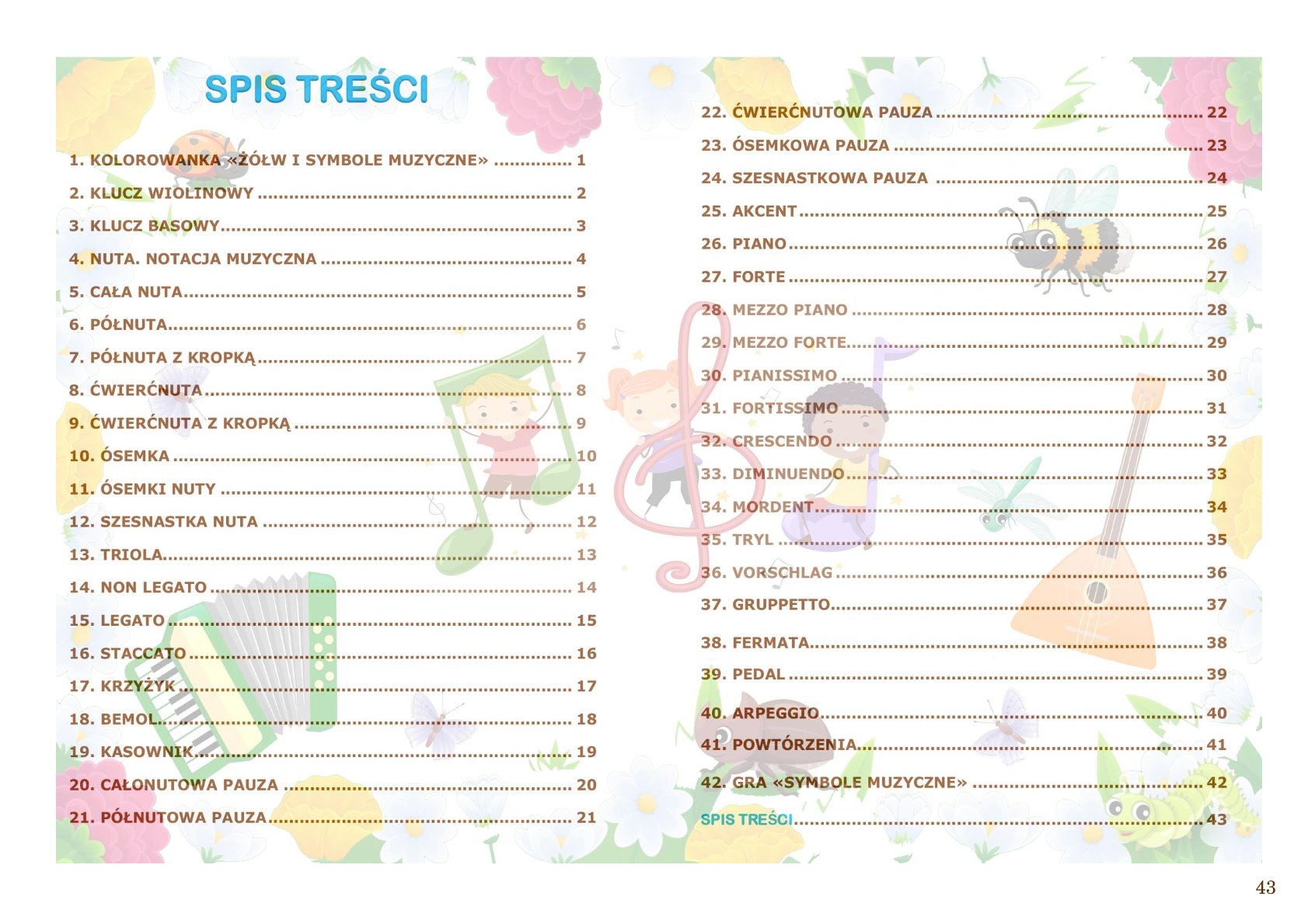 Zeszyt zawiera 35 barwnych stron, a każdy krzyżówka i rebus są dobrane z myślą o stopniowym zwiększaniu trudności. Dzięki temu uczniowie krok po kroku zanurzają się w świat teorii muzyki i poznają m.in.: