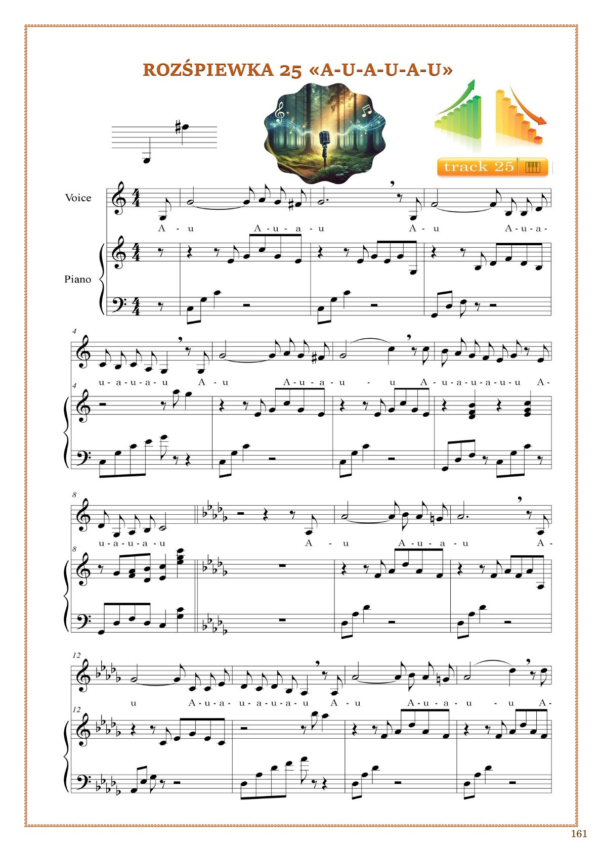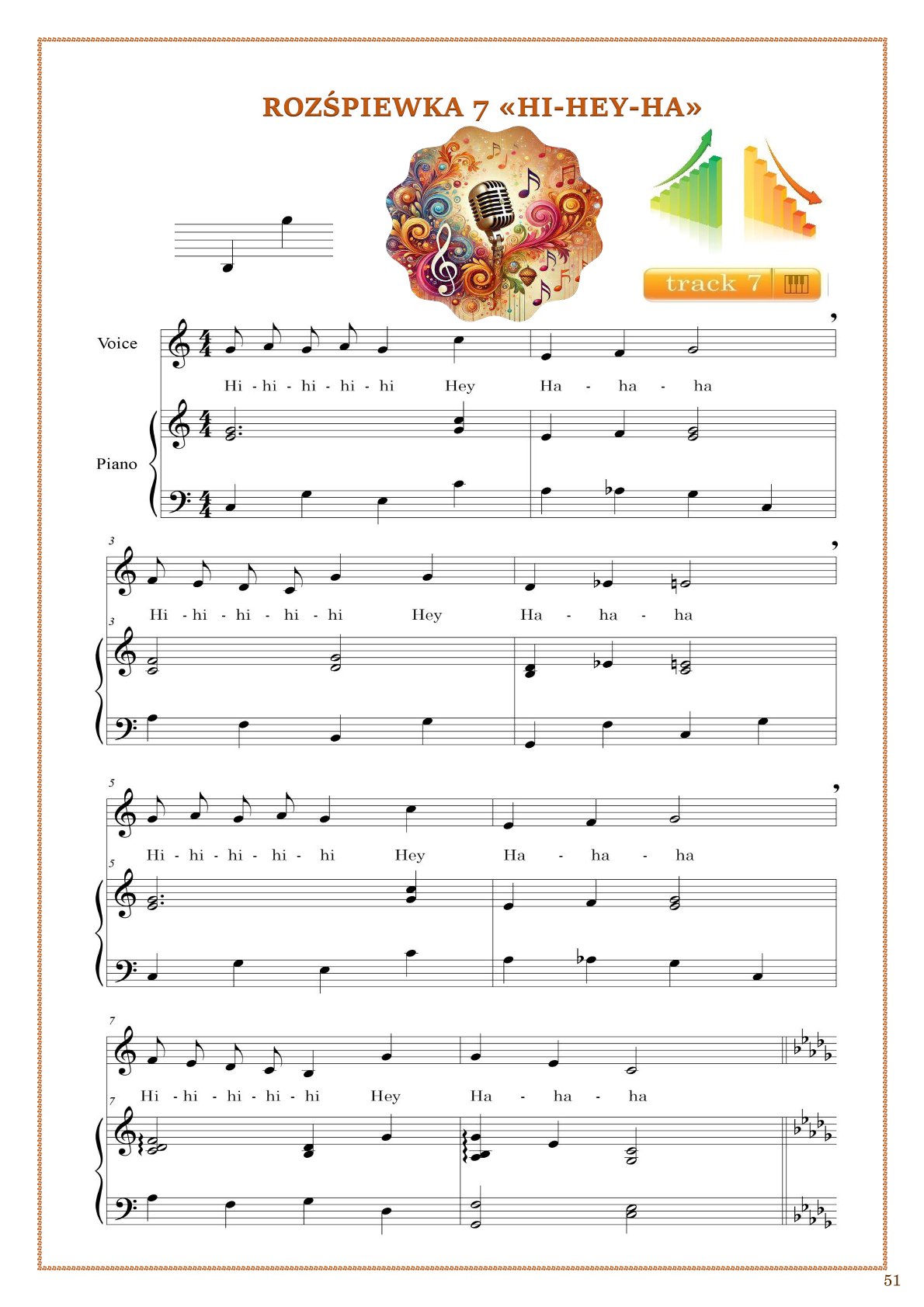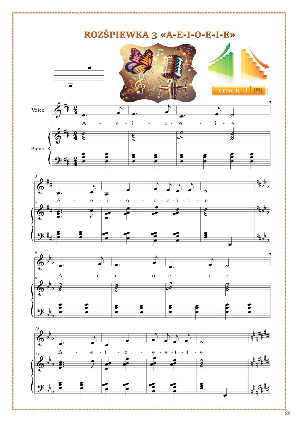 🎼 Materiał nutowy w różnych tonacjach — dzięki temu ćwiczenia można dopasować do praktycznie każdego zakresu głosu.