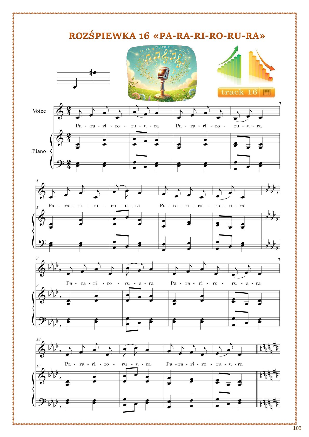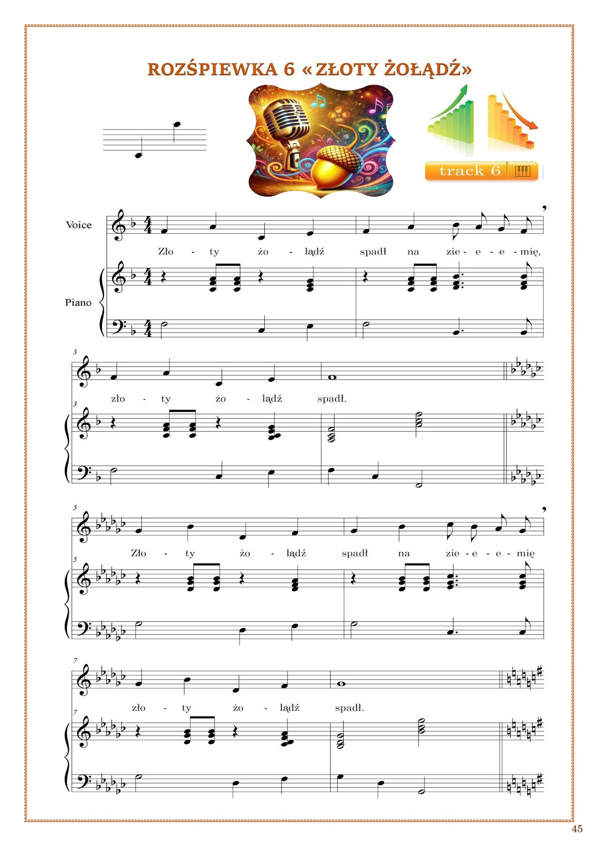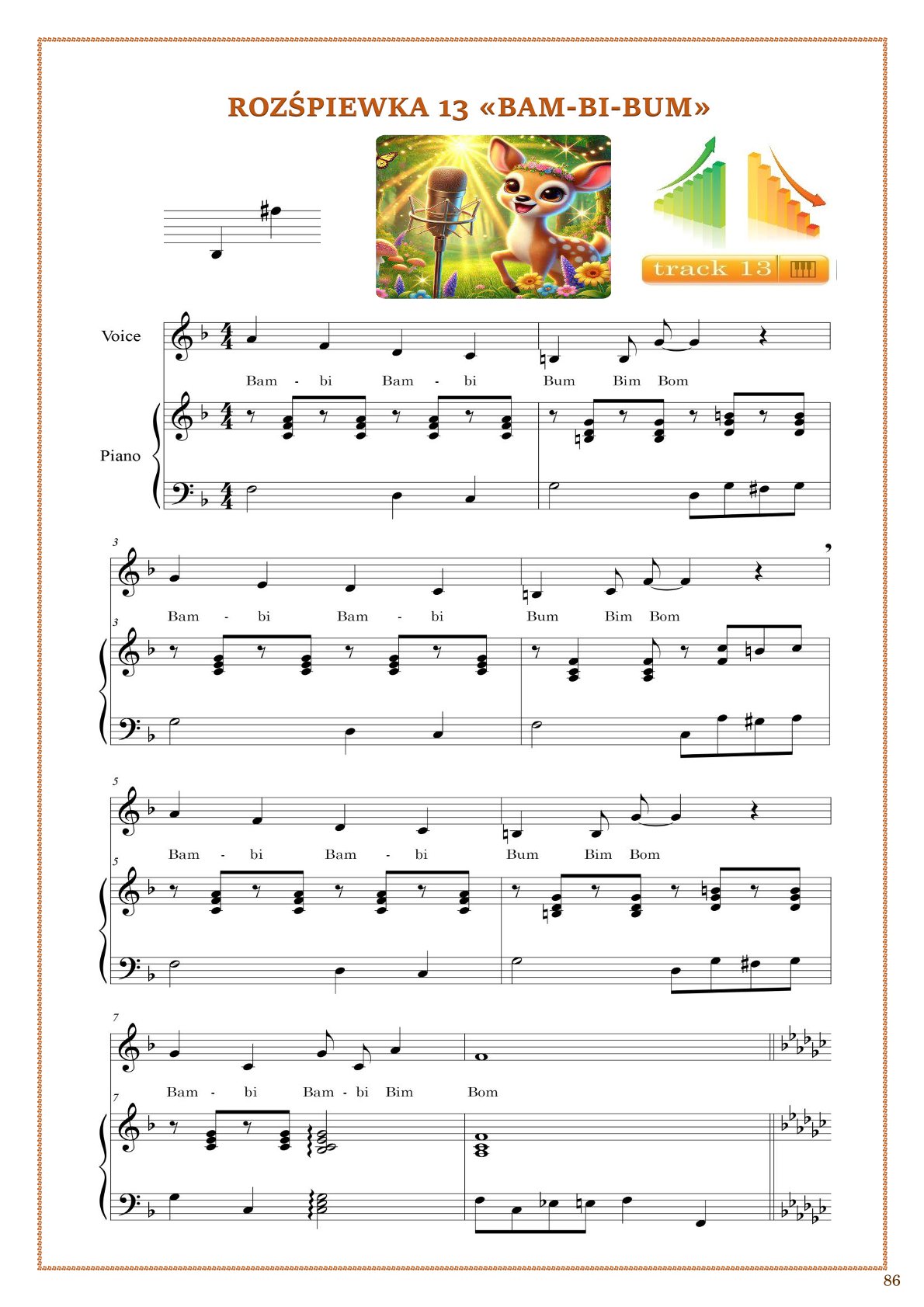 🎼 Materiał nutowy w różnych tonacjach — dzięki temu ćwiczenia można dopasować do praktycznie każdego zakresu głosu.