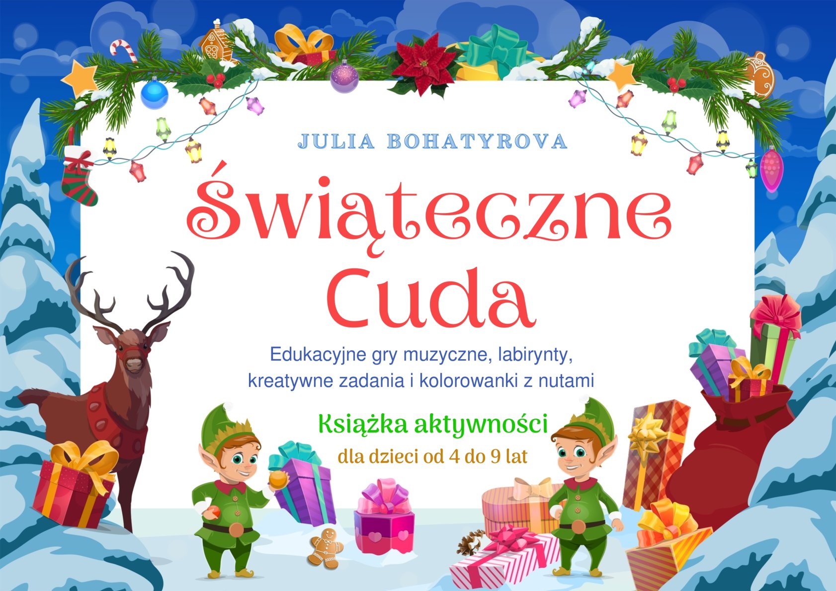 Właśnie z myślą o tym autorka Yulia Bohatyrova stworzyła zbiór „Świąteczne Cuda” — fascynujące muzyczno-dydaktyczne gry, które wypełnią zimowe ferie Twoich młodych muzyków radością, ciepłem i inspiracją!