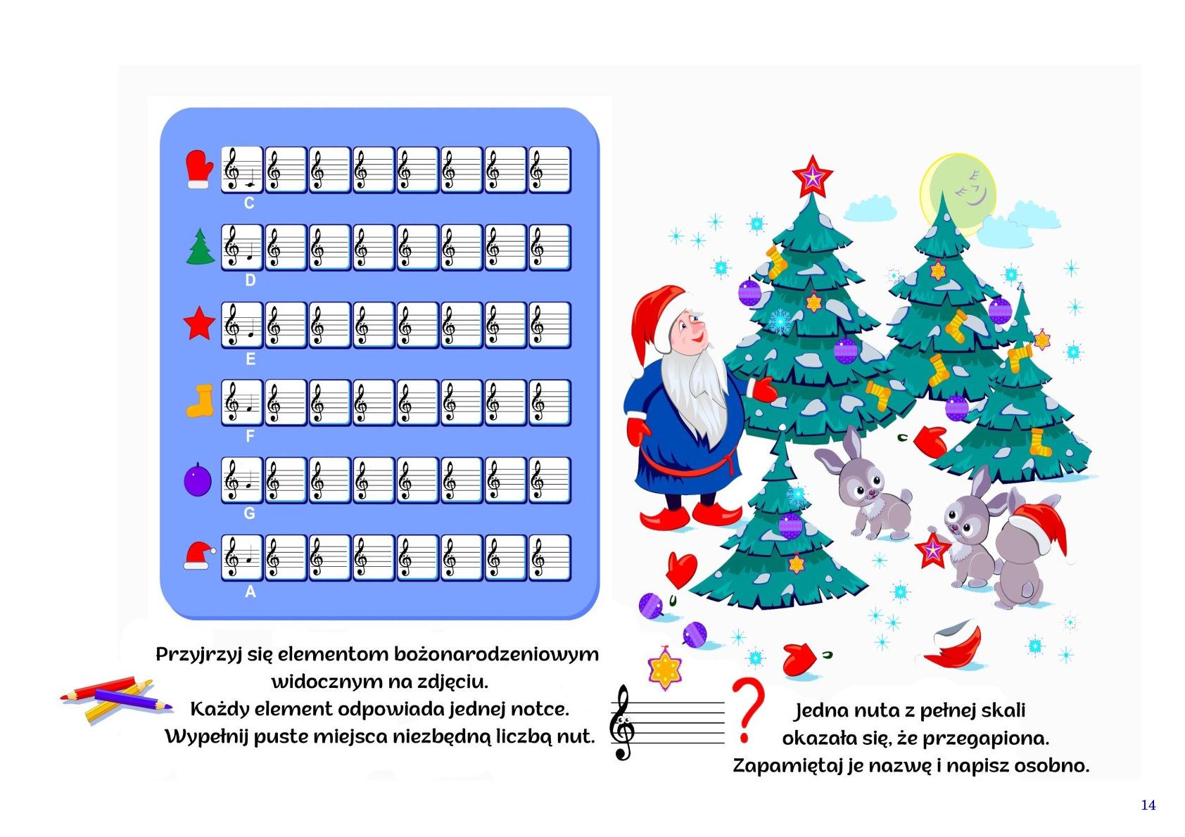 To nie tylko pożyteczna pomoc edukacyjna, ale i wspólna zabawa. Możecie razem rozwiązywać zadania, kolorować, odkrywać świat muzyki w radosnym, świątecznym klimacie.