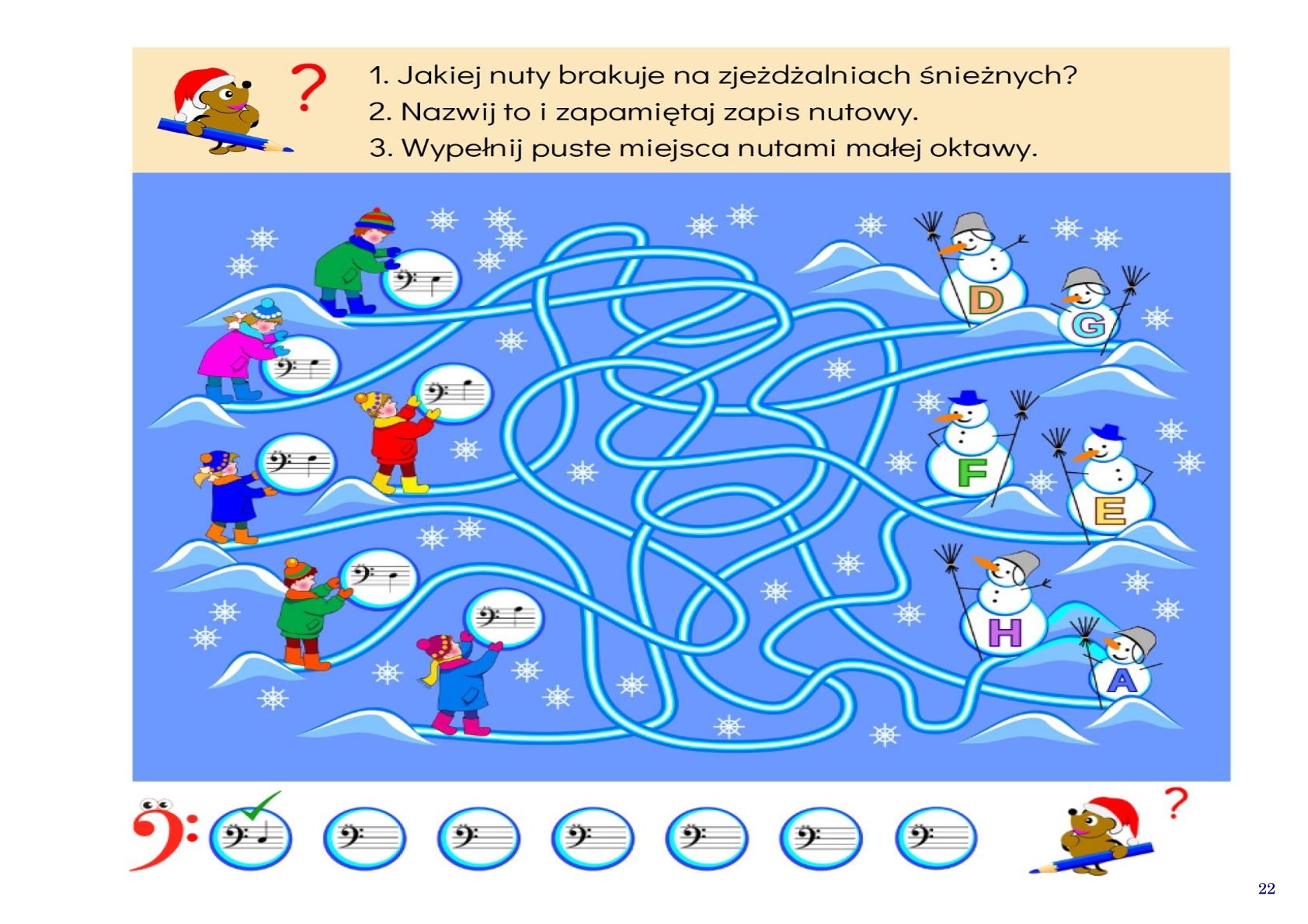 Każda gra połączona jest z twórczym ćwiczeniem — muzycznymi labiryntami, zagadkami, rebusami, krzyżówkami 🧩 i zimowymi kolorowankami ⛄. Nauka zamienia się w zabawę, a zabawa w prawdziwą przygodę.
