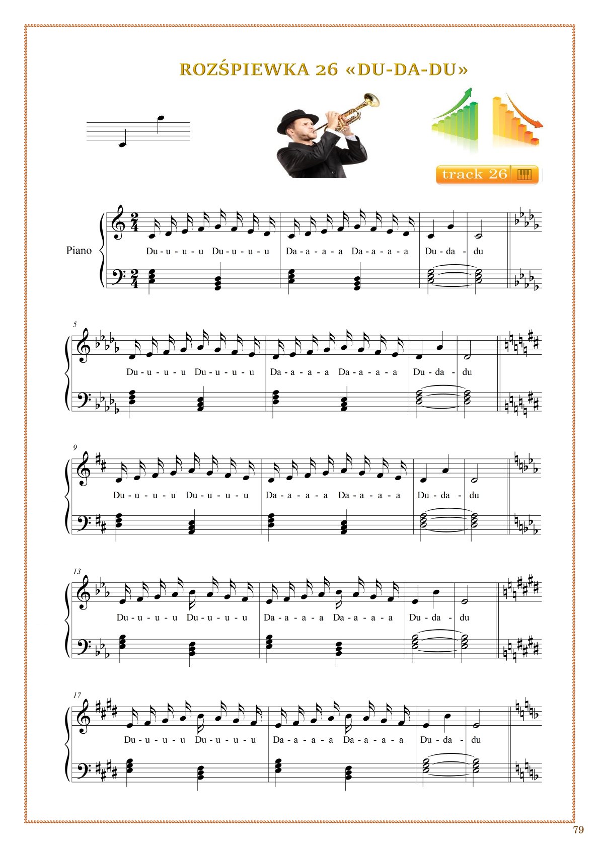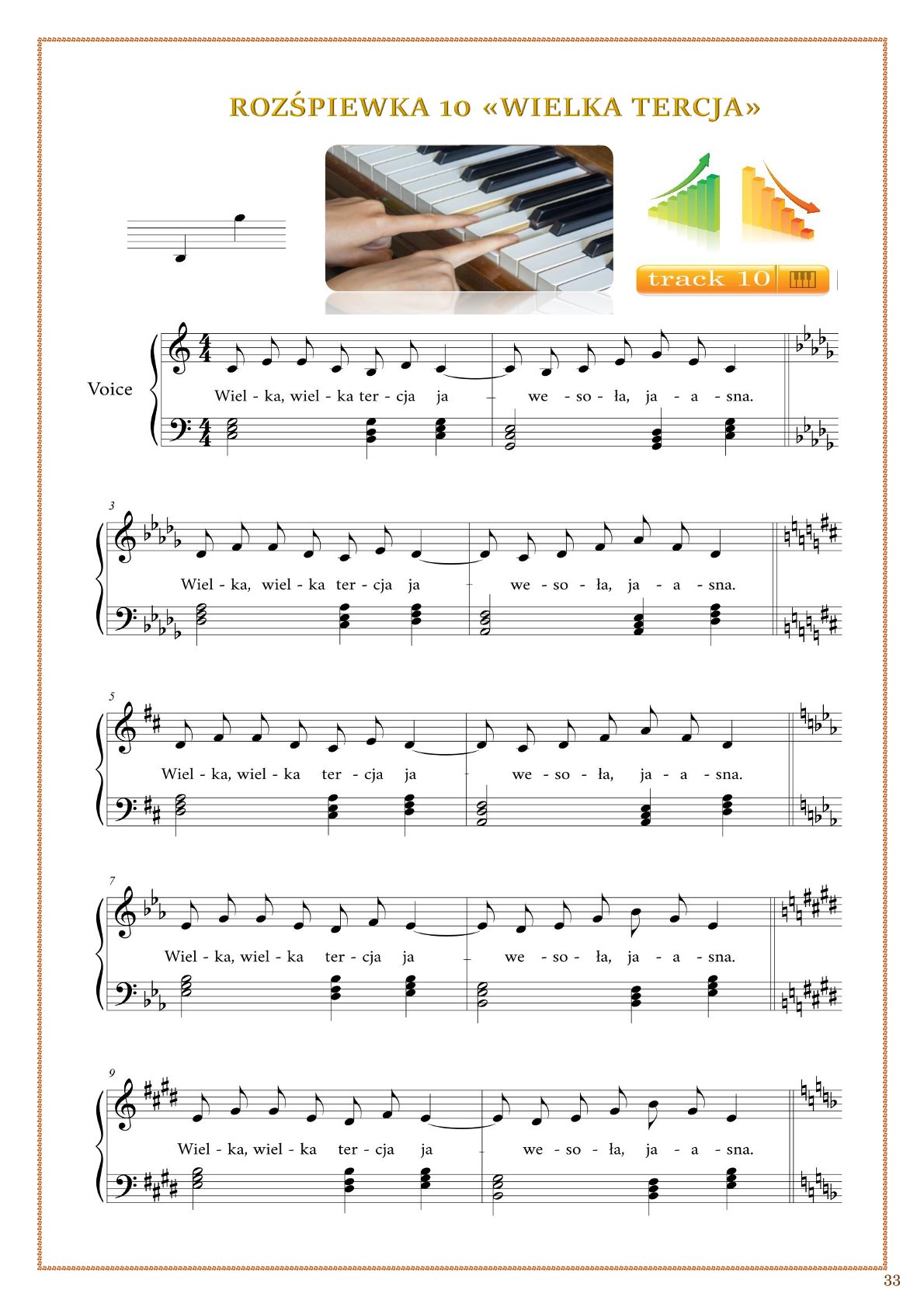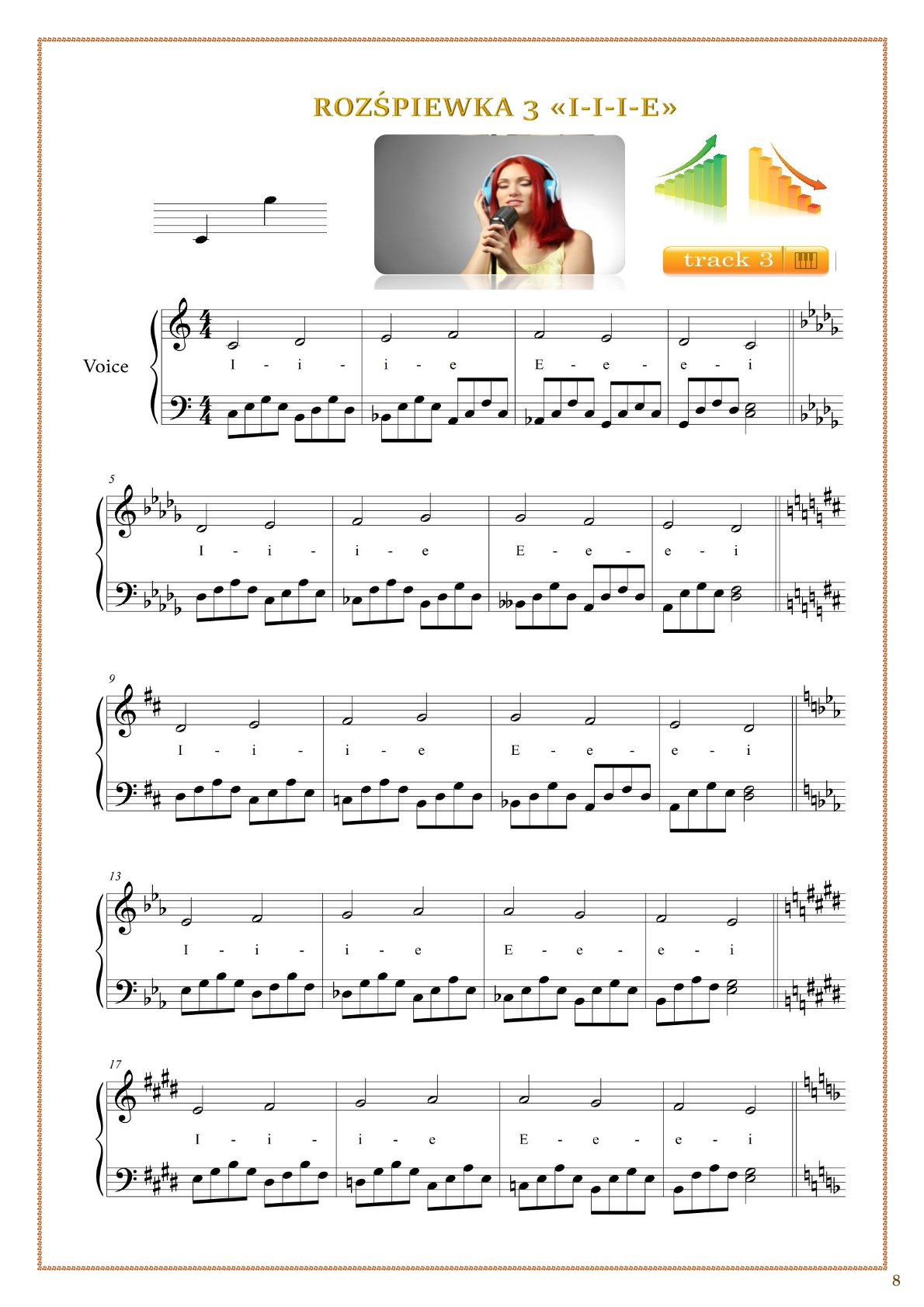 📊 Materiał jest ułożony w formie planu lekcji: od prostych interwałów (sekunda mała i duża) do bardziej wymagających układów. Taki sposób pracy jest szczególnie pomocny dla dzieci i dorosłych, którzy mają trudności z intonacją — wspiera rozwój słuchu i precyzji wykonywania dźwięków.