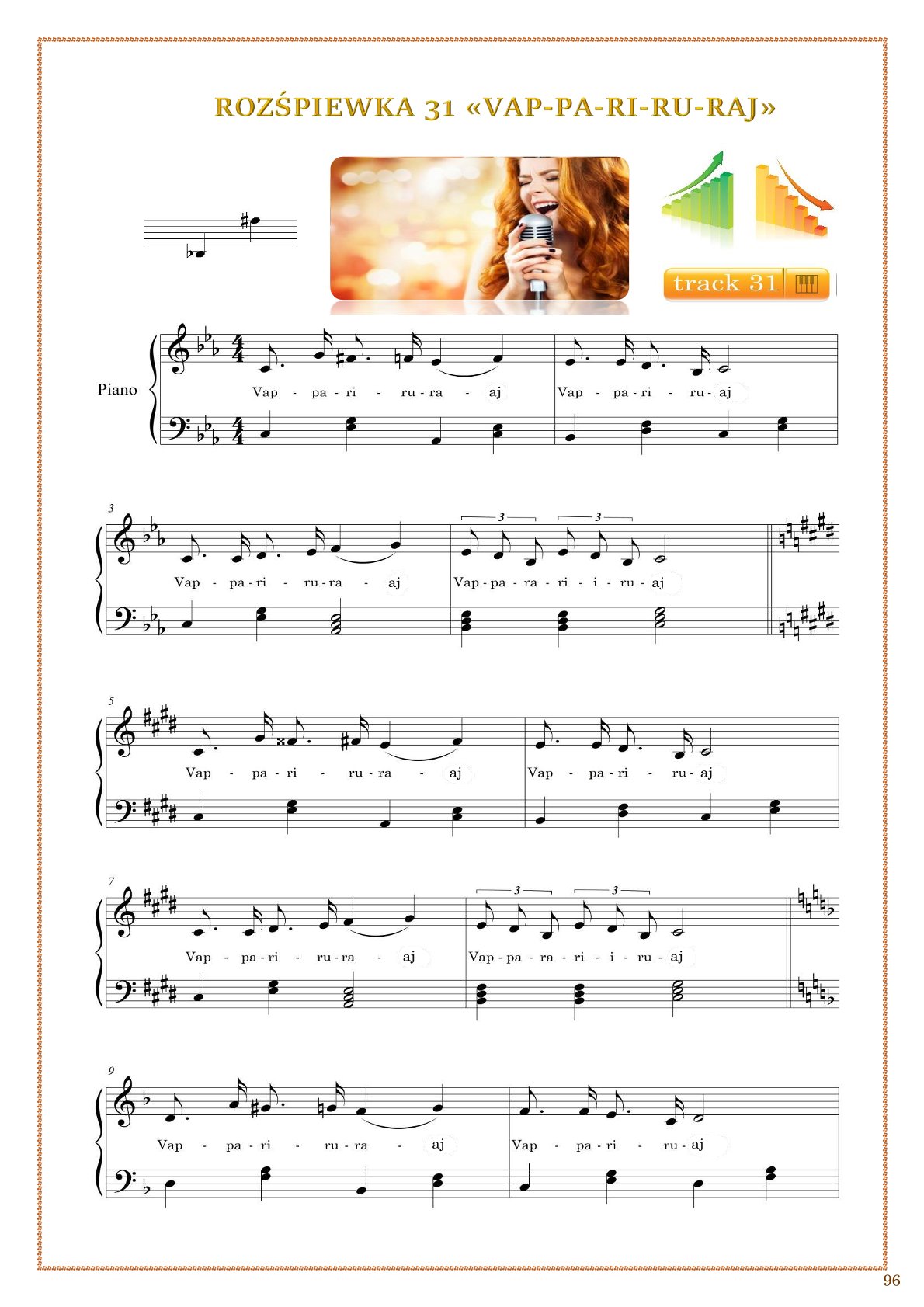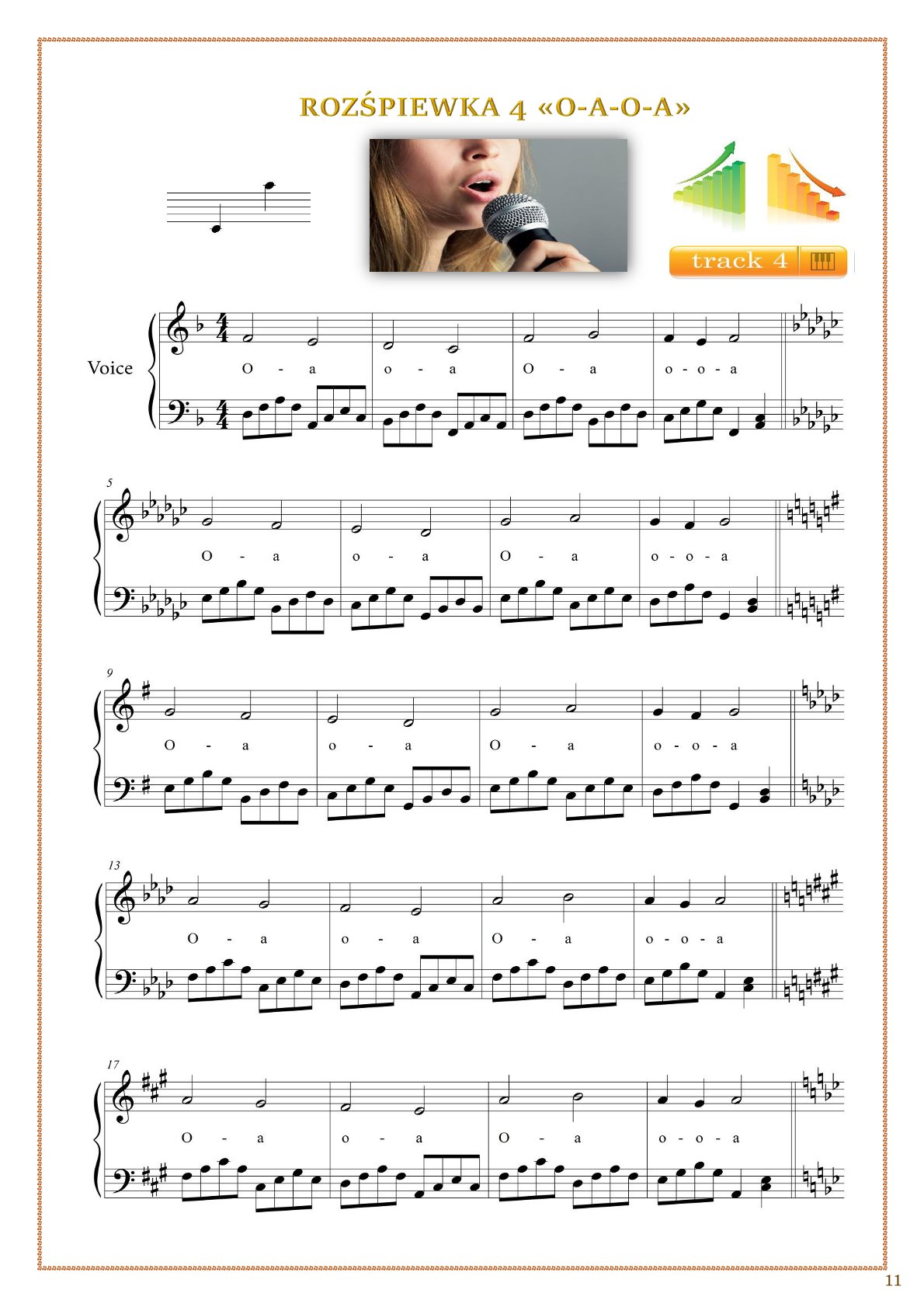 Idealnie sprawdza się dla nauczycieli śpiewu, podczas lekcji online oraz w nauce samodzielnej. W publikacji znajduje się 40 autorskich ćwiczeń z plikami MP3, które pomagają rozwijać skalę głosu, pewność sceniczną i piękne brzmienie.